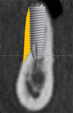 歯周病や歯の喪失などが原因で、骨が必要な量よりもやせてしまっている場合には骨を増やすGBR法を行いますが、やはりインプラント本体が自家骨に囲まれていた方が安定し易いところもあります。