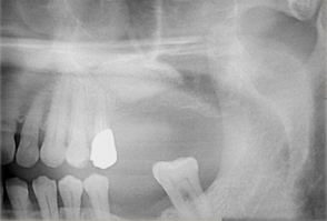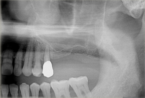- 上顎臼歯部の67欠損となり、上顎洞までの距離が不足したためインプラントの早期埋入が不可能であった